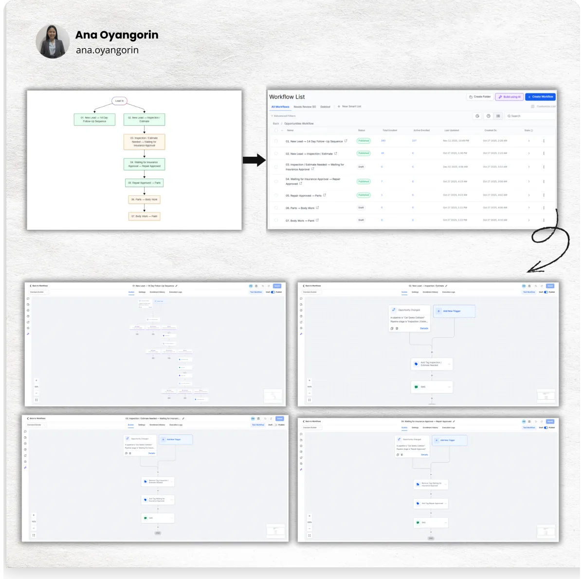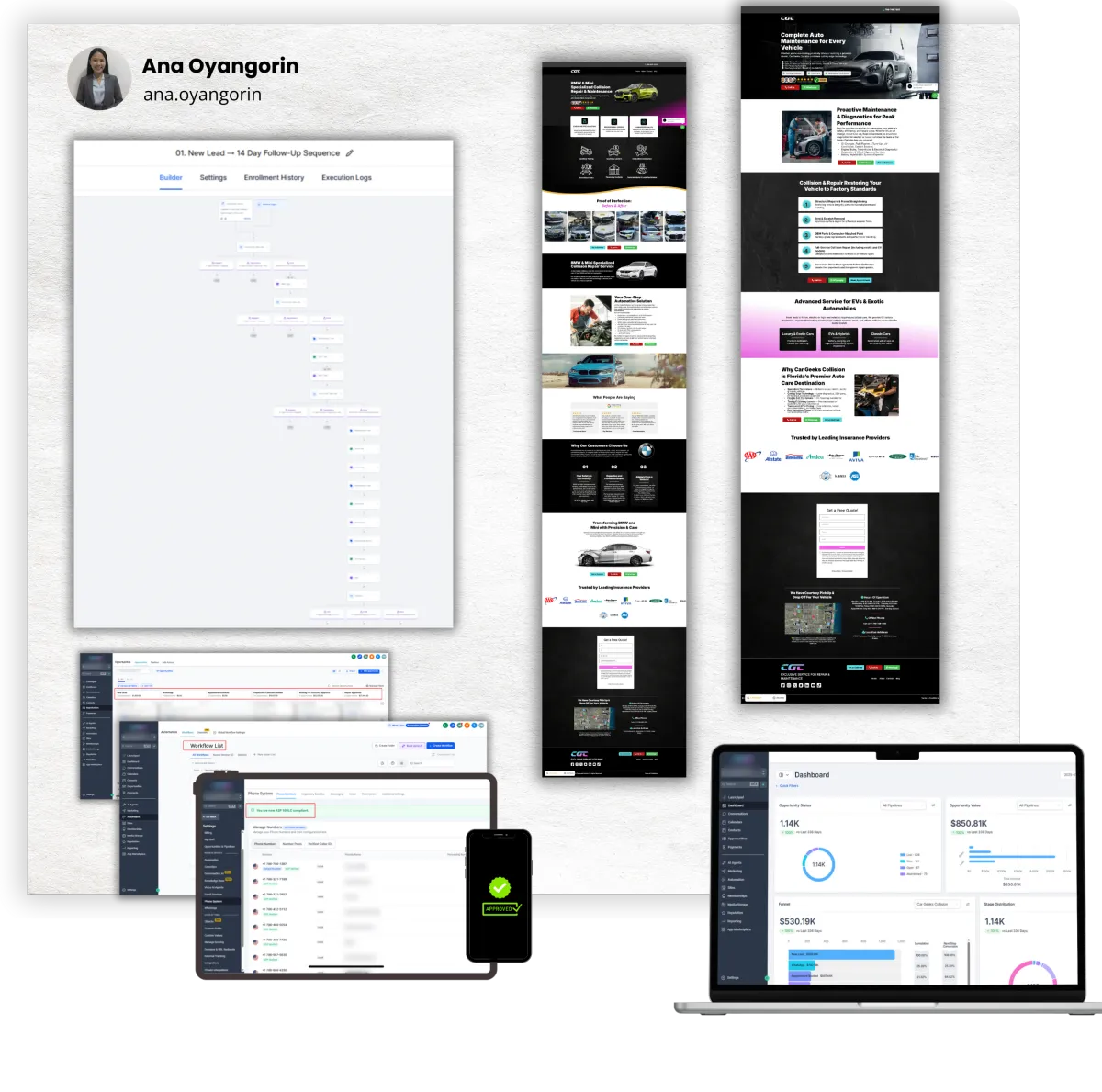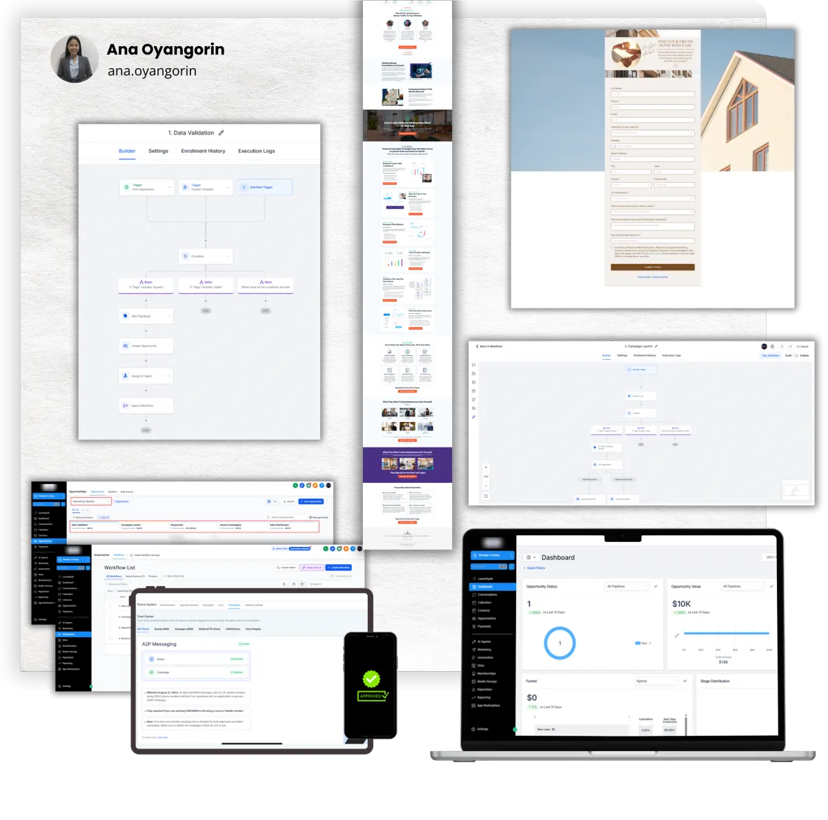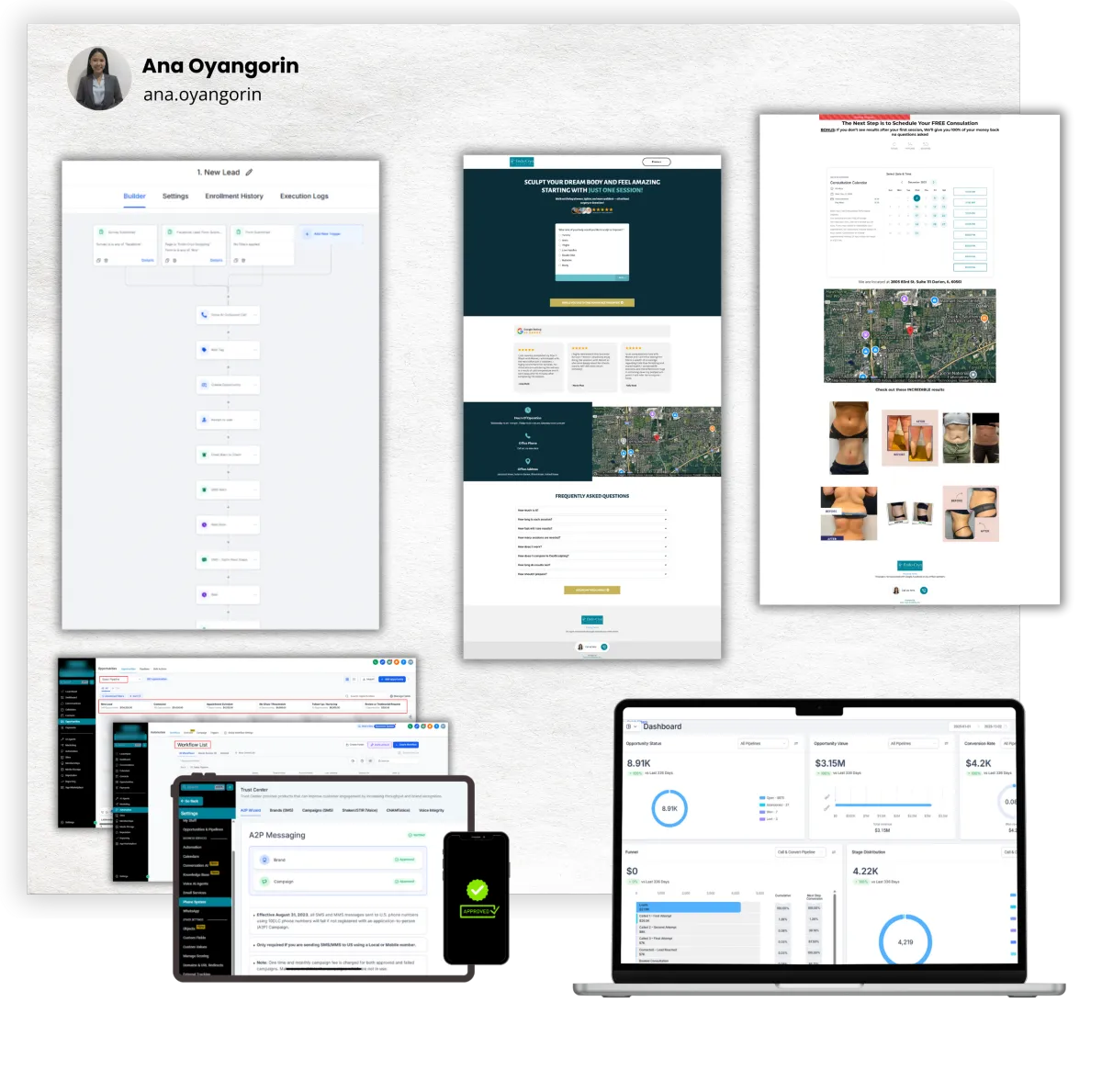 I create and optimize funnels, automations, pipelines, and appointment flows that help you get more leads, increase conversions, and streamline your operations so you can finally grow without feeling overwhelmed.